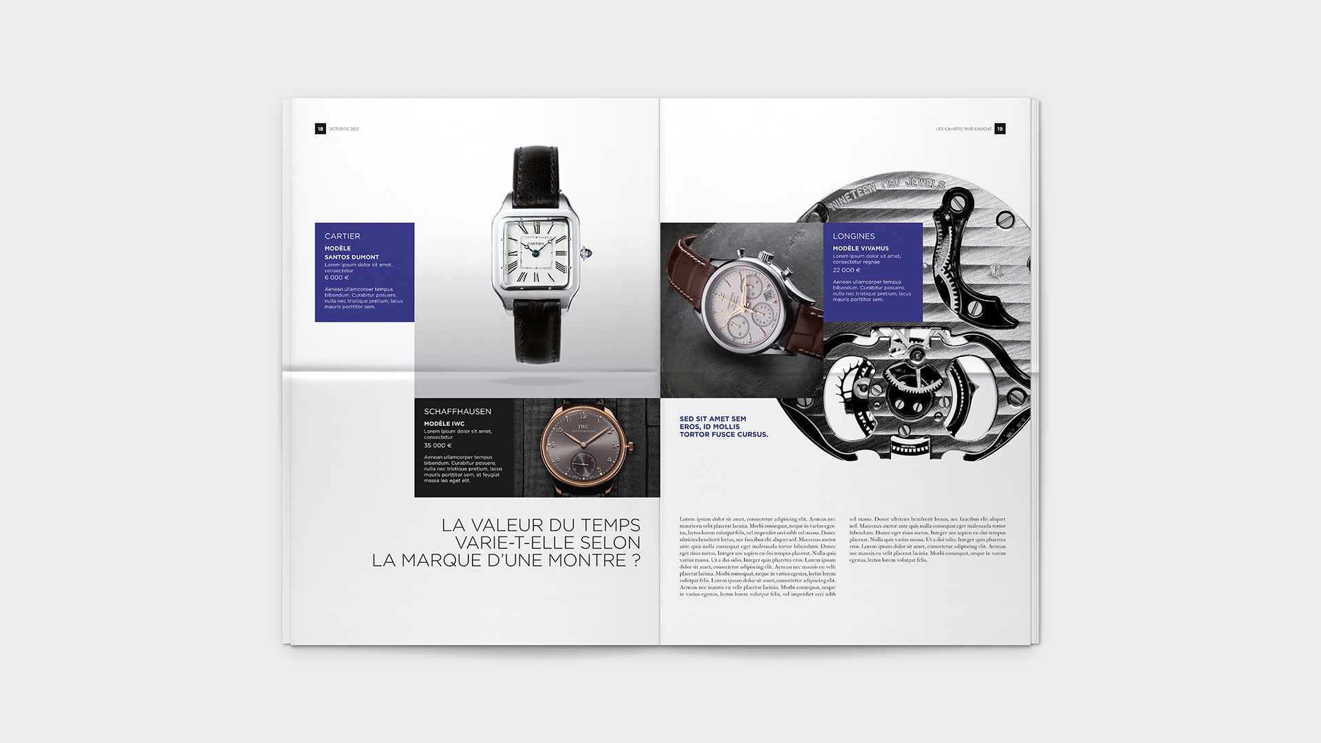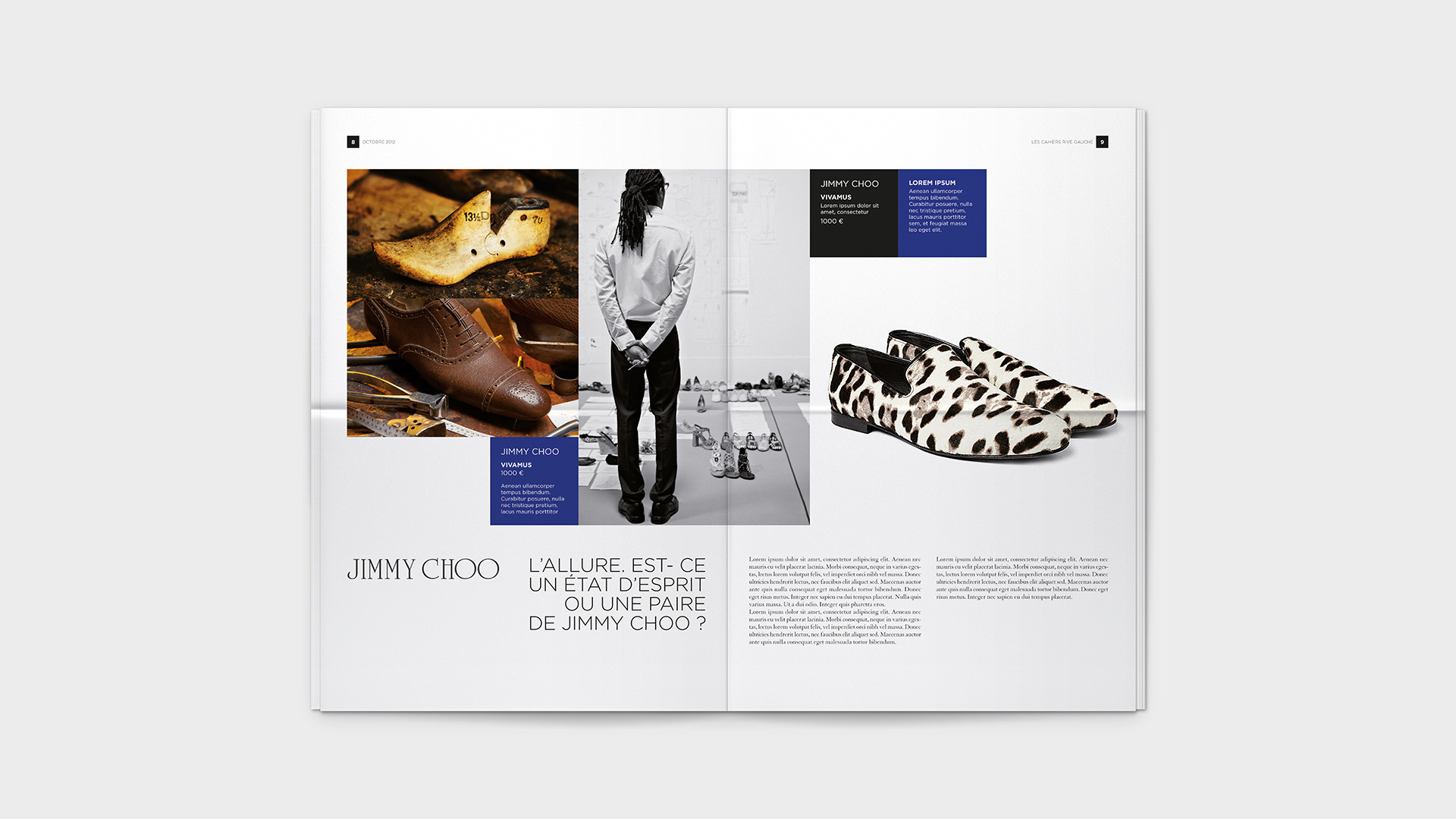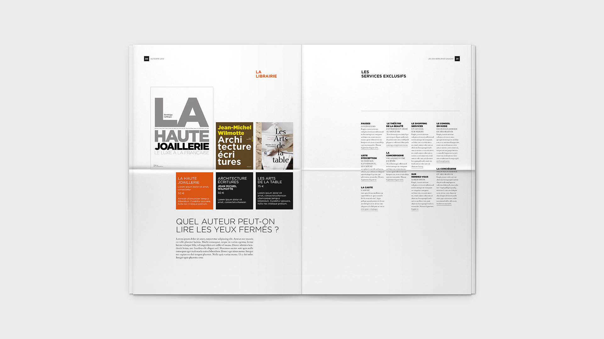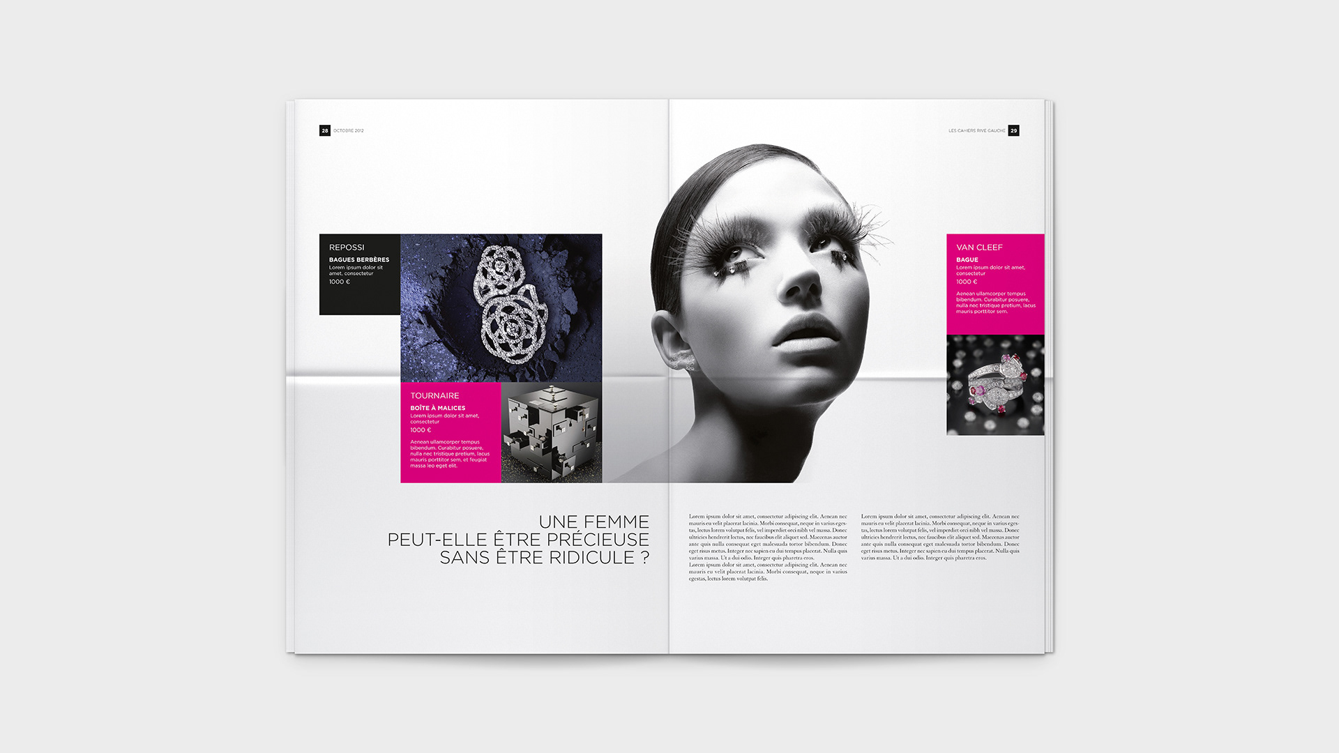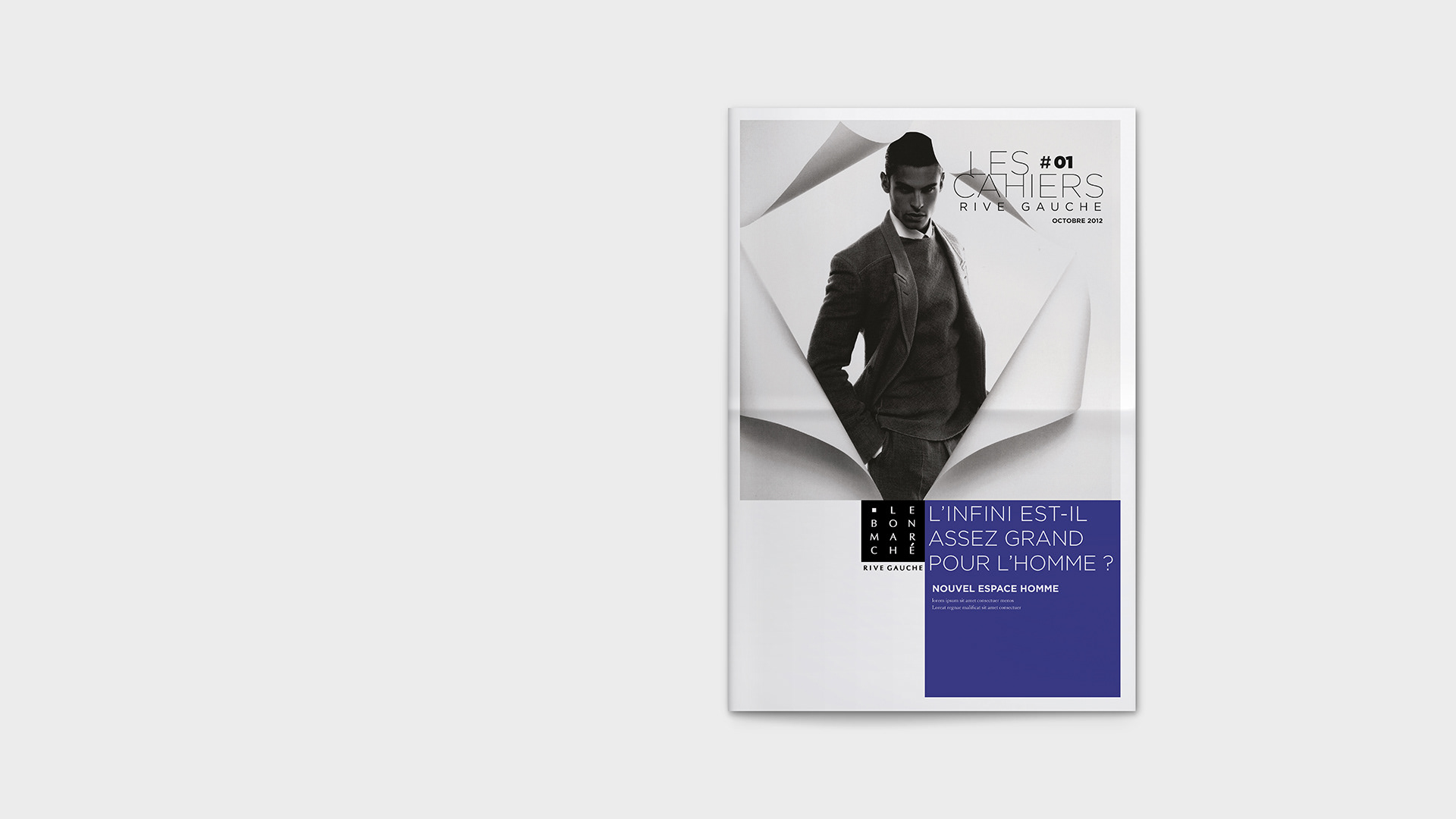 Graphic design for Bon Marché's monthly Les Cahiers Rive Gauche. / Conception graphique du journal mensuel Les Cahiers Rive Gauche du Bon Marché.