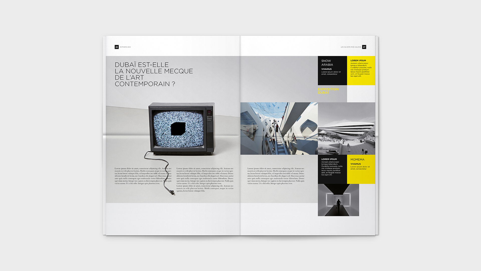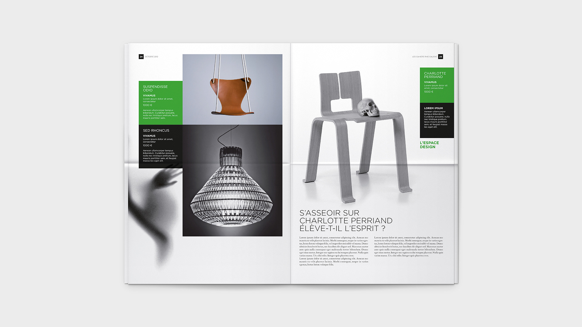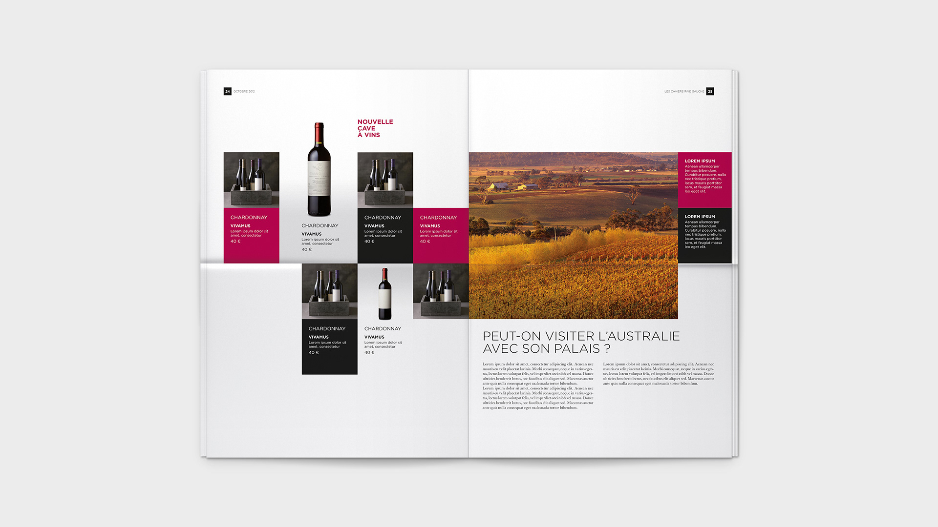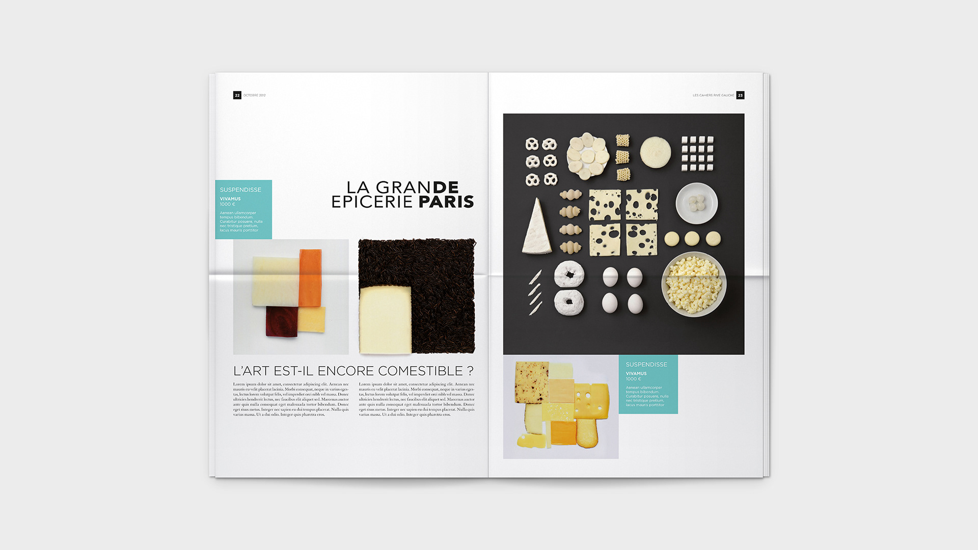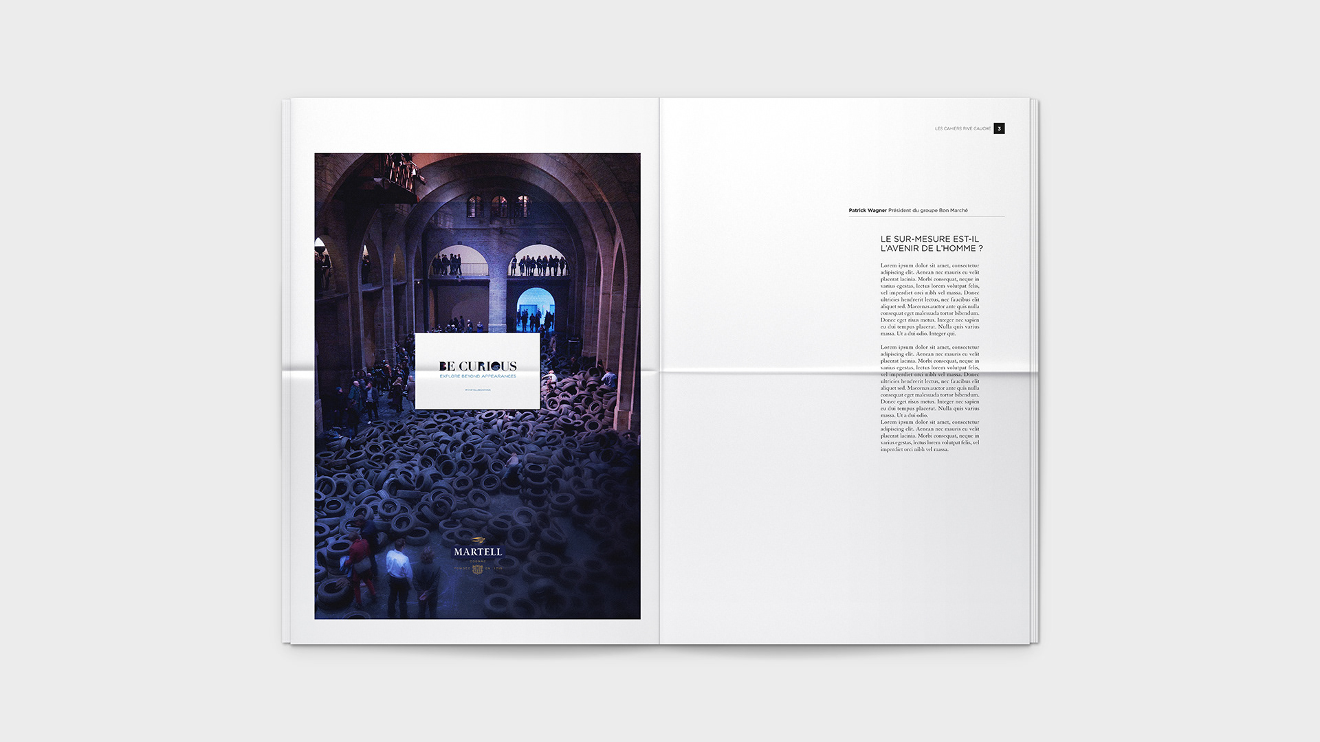 Graphic design for Bon Marché's monthly Les Cahiers Rive Gauche. / Conception graphique du journal mensuel Les Cahiers Rive Gauche du Bon Marché.